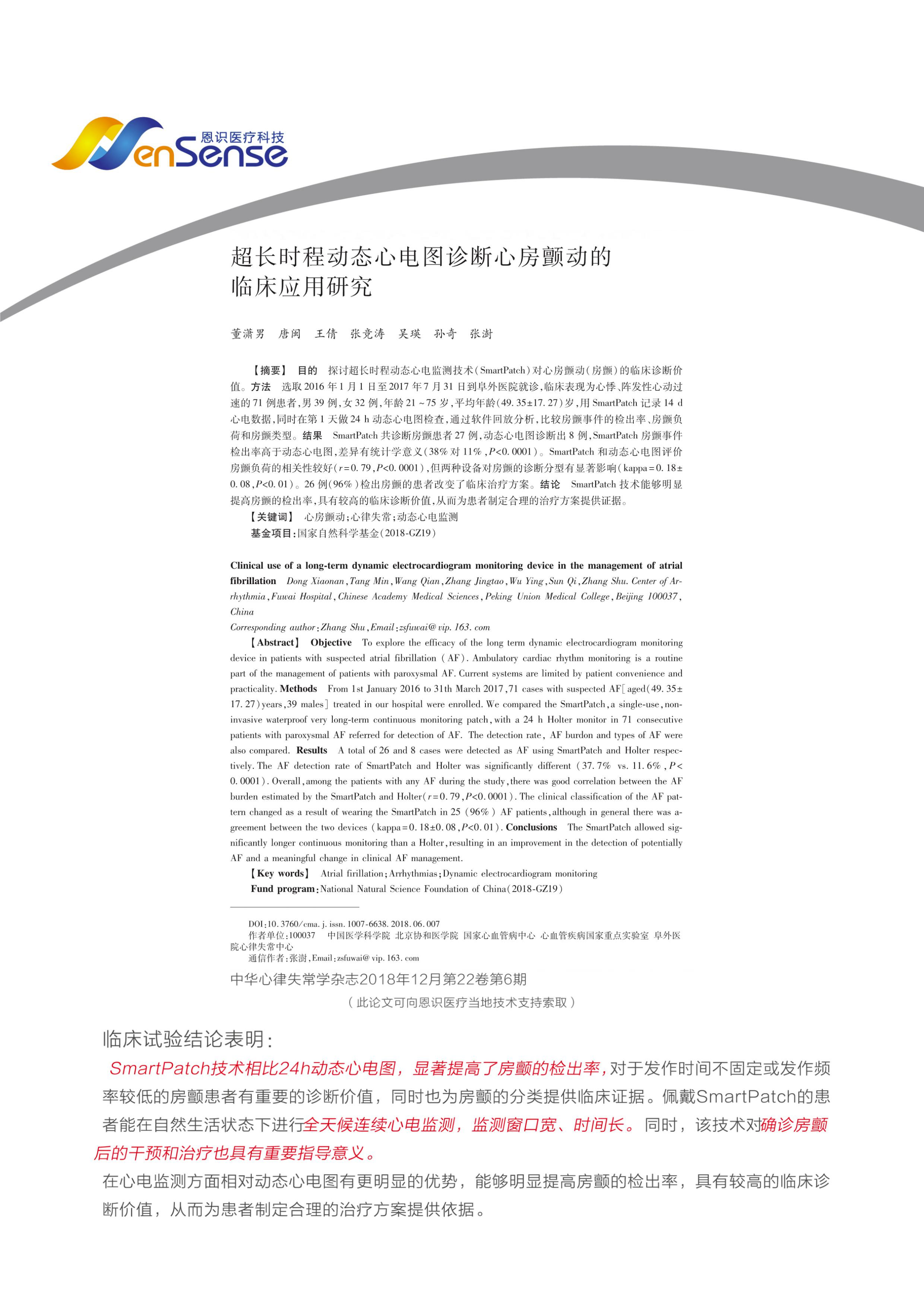 随心贴SmartPatch贴附式动态心电记录系统